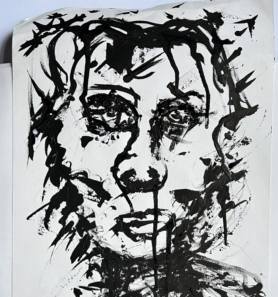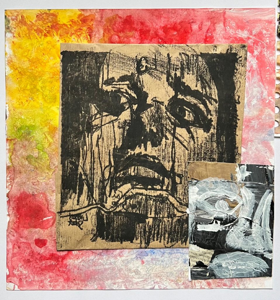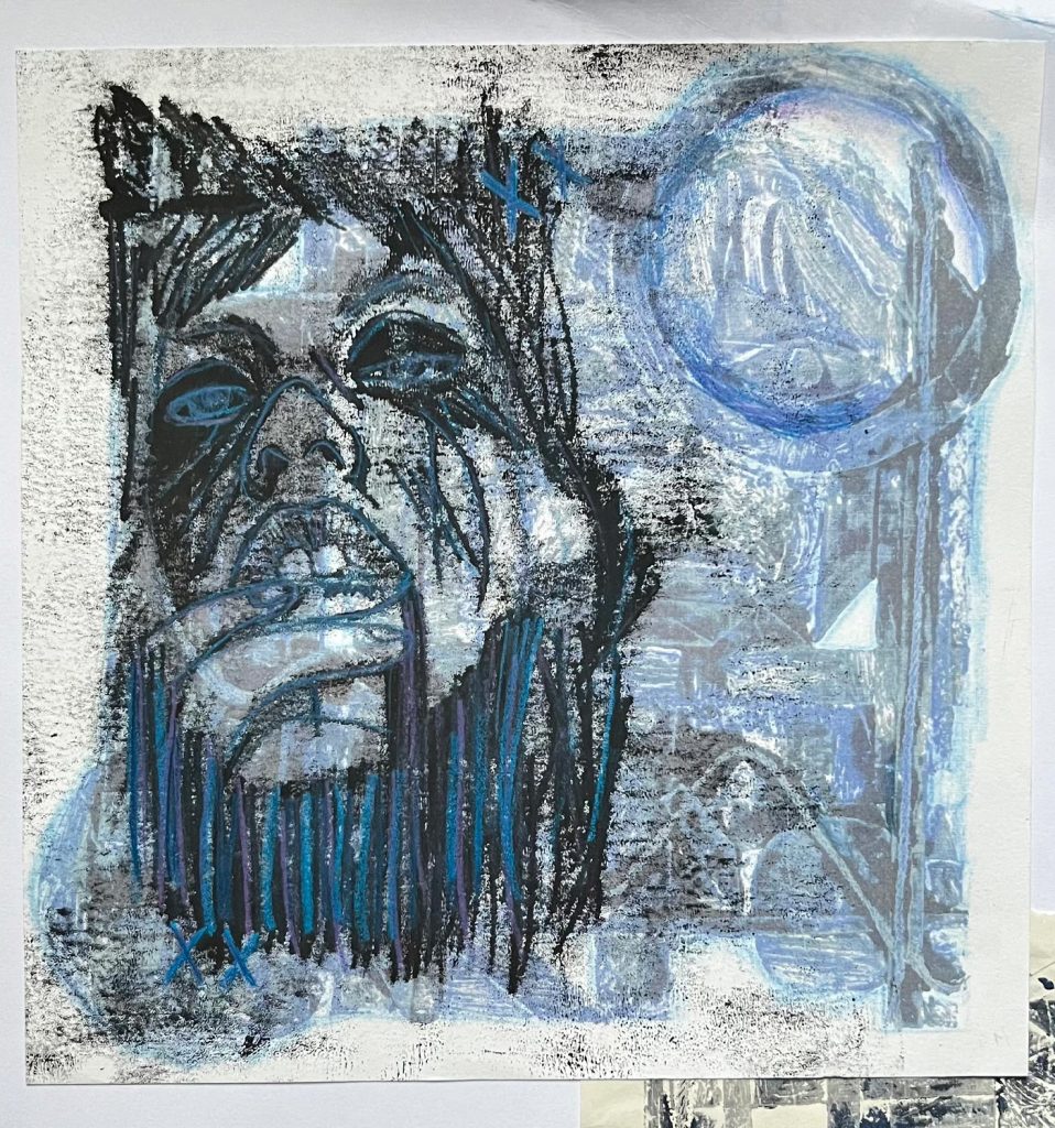 This project consisted of mono-printing, black ink and acrylic paint.